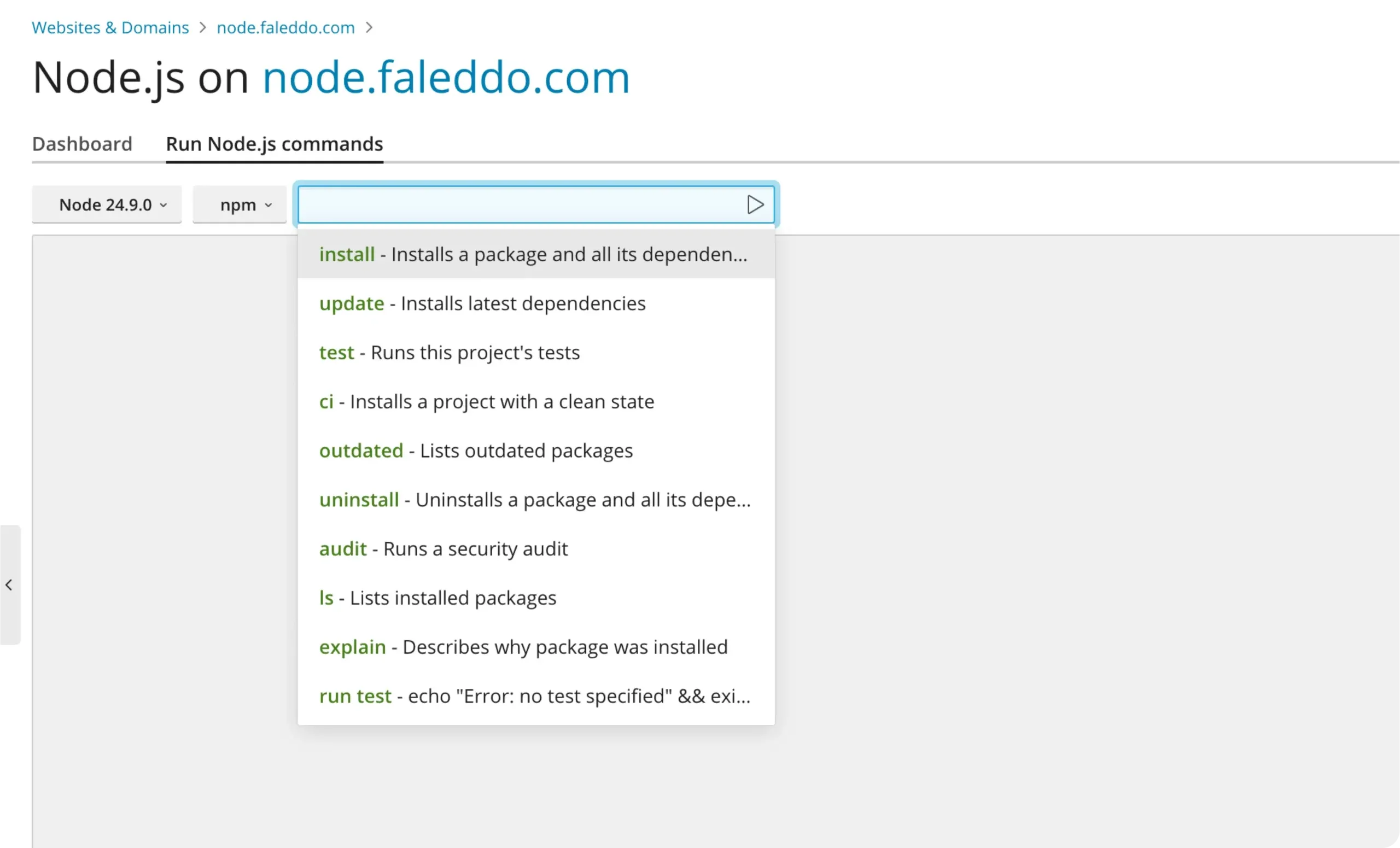 Run npm install, update dependencies, test, or even audit your app from the dashboard. Get the power of the command line without ever touching the terminal.